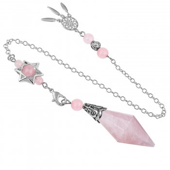 Natural Rose Quartz Double Pointed Faceted Pendant with Star of David Dreamcatcher for Divination & Jewelry