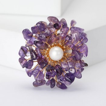Natural Stone Copper Wire Flower Brooch – Handmade Unisex Jewelry Pin