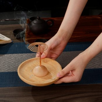 Creative Wooden Incense Burner with Metal Coil Holder